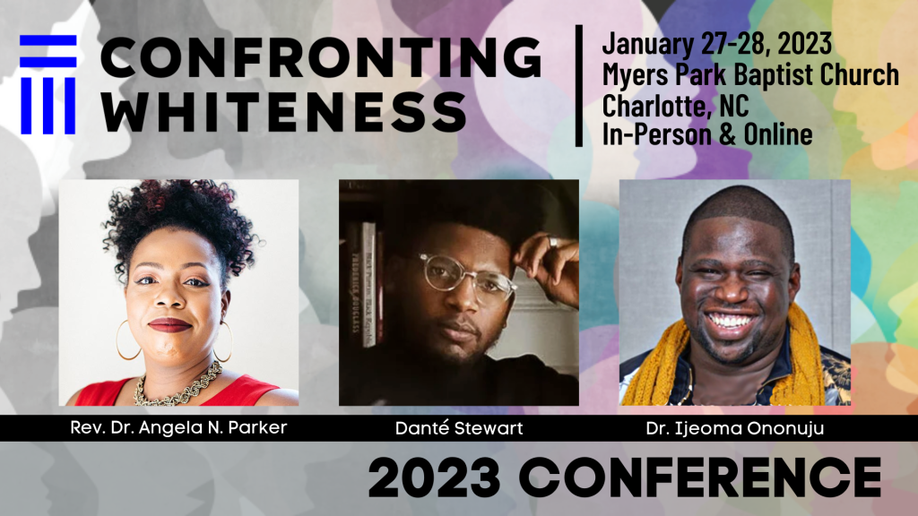The 2nd Annual Confronting Whiteness Conference will take place on January 27-28th at Myers Park Baptist Church in Charlotte, North Carolina. Join others on the anti-racist journey and hear from Black authors, thinkers, and theologians as we seek to understand our role in racial injustice and our part in dismantling it. The two-day conference will include speakers, breakout sessions, and a pop-up market featuring locally owned Black businesses, food trucks, and artisans. This year's speakers include Rev. Dr. Angela Parker, Dr. Ijeoma Ononuju, and keynote speaker Danté Stewart, author of Shoutin’ in the Fire: An American Epistle.