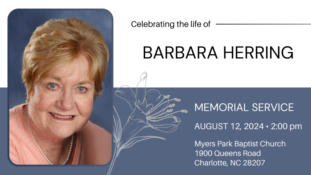 Myers Park Baptist Church1900 Queens RoadCharlotte, NC 28207-2582Phone: (704) 334-7232Fax: (704) 372-5150