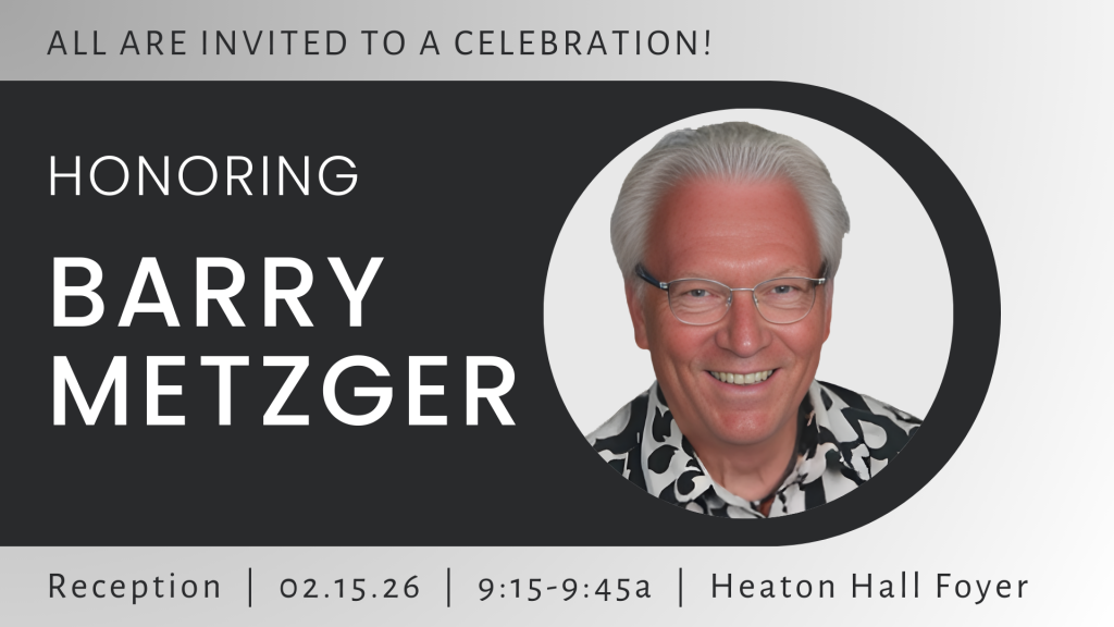 Please join us on Sunday, February 15, from 9:15–9:45 am in the Heaton Hall Foyer as we gather to express our thanks to Barry Metzger.