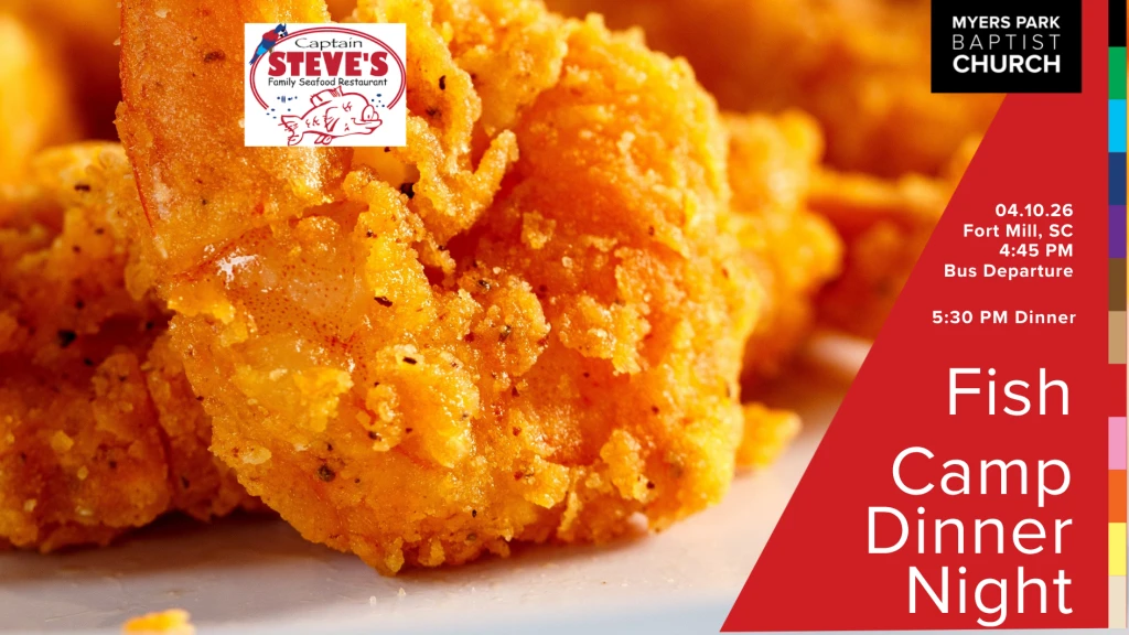 Get ready for a classic Southern evening of great food, fellowship, and fun! Join us for Fish Camp Dinner Night at Captain Steve’s in Fort Mill, South Carolina, where we’ll enjoy a delicious seafood dinner and plenty of time to connect with one another.