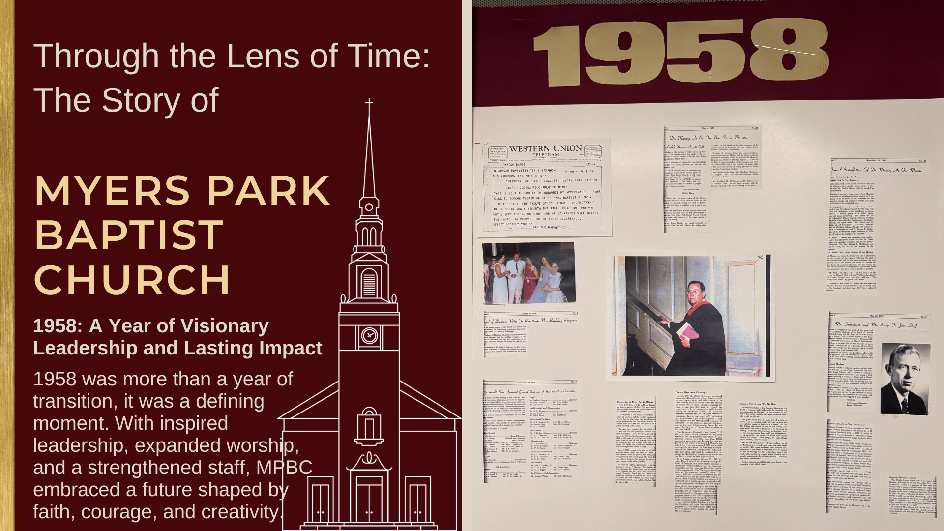 1958 was more than a year of transition, it was a defining moment in the life of Myers Park Baptist Church. With inspired leadership, expanded worship, and a strengthened staff, the congregation embraced a future shaped by courage, creativity, and deep faith. These providential beginnings laid the foundation for decades of vibrant ministry and enduring community.