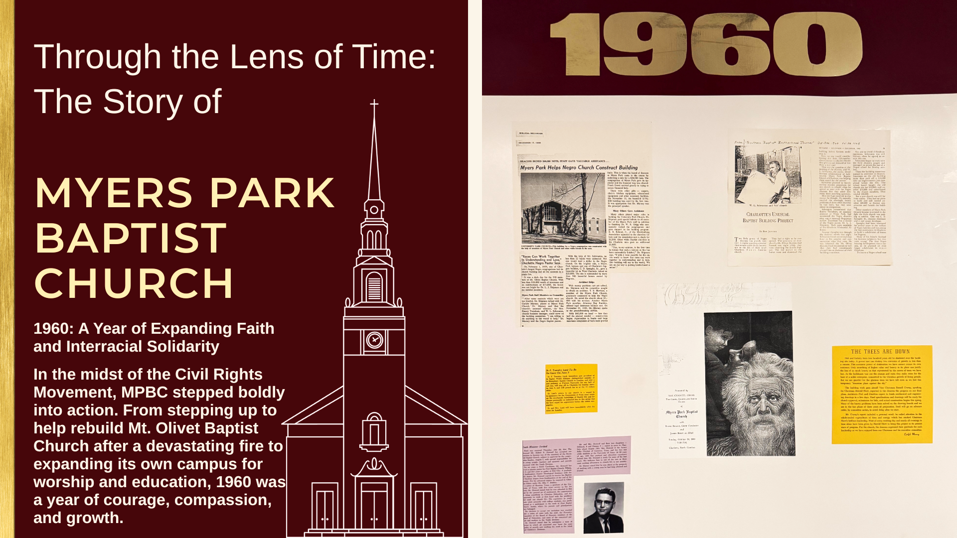 The year 1960 was a watershed moment in American history—a time when the Civil Rights Movement was gaining momentum and communities across the South were grappling with questions of justice, equality, and reconciliation. In Charlotte, these national currents touched Myers Park Baptist Church in profound ways. Against a backdrop of racial segregation and systemic barriers, the congregation chose a different path: one of solidarity, compassion, and bold action. From helping rebuild Mt. Olivet Baptist Church after a devastating fire to expanding its own campus for worship and education, Myers Park Baptist demonstrated that faith could be a force for change—bridging divides and shaping a more inclusive future.