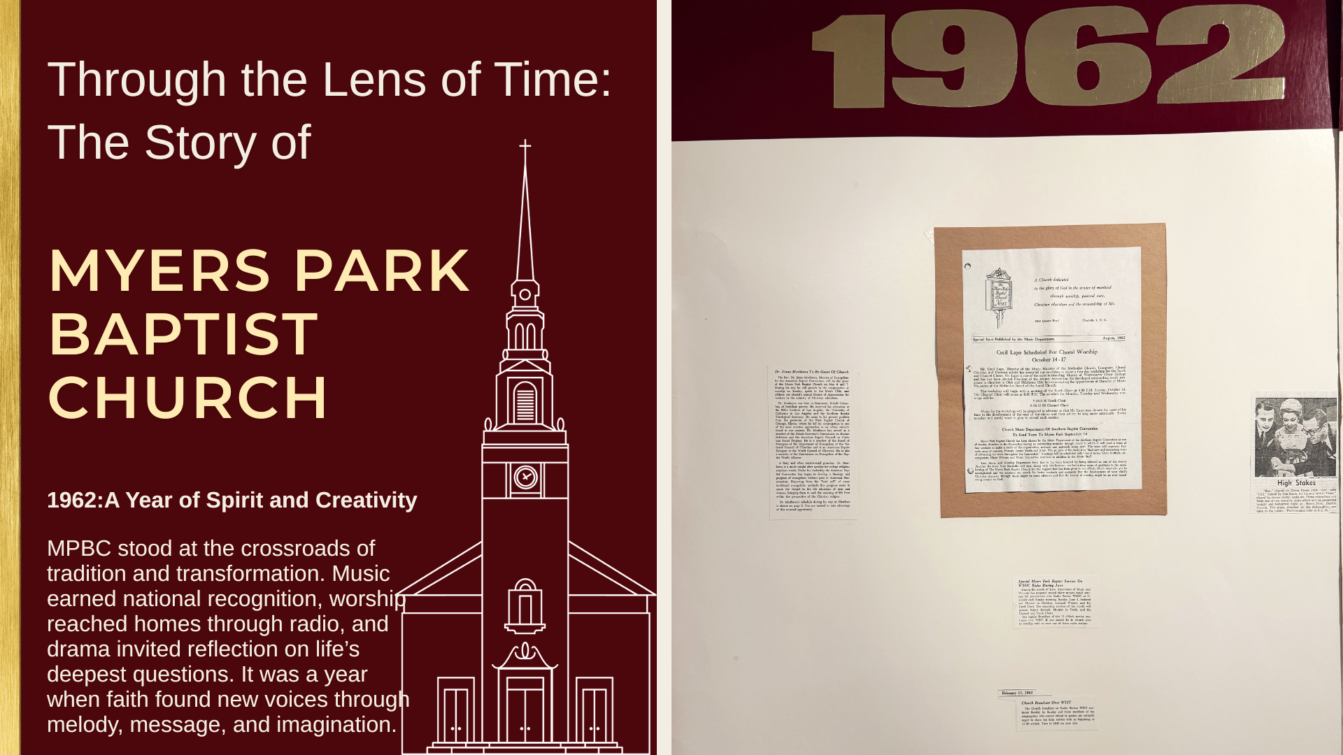 The year was 1962. Beyond the streets of Myers Park, a Baptist congregation stood at the crossroads of tradition and transformation. Inside its sanctuary, voices rose, not as mere performance, but as a living testimony of faith. Music became the heartbeat of a community, so compelling that it drew national attention. Worship spilled beyond brick walls, carried on radio waves into homes across the city. Even the stage became sacred ground, where morality plays wrestled with pride, temptation, and the fate of the soul. This was no ordinary year. It was a season when Myers Park Baptist dared to believe that God’s Spirit moves through melody and message, through drama and dialogue, through every creative act that speaks hope into a changing world.