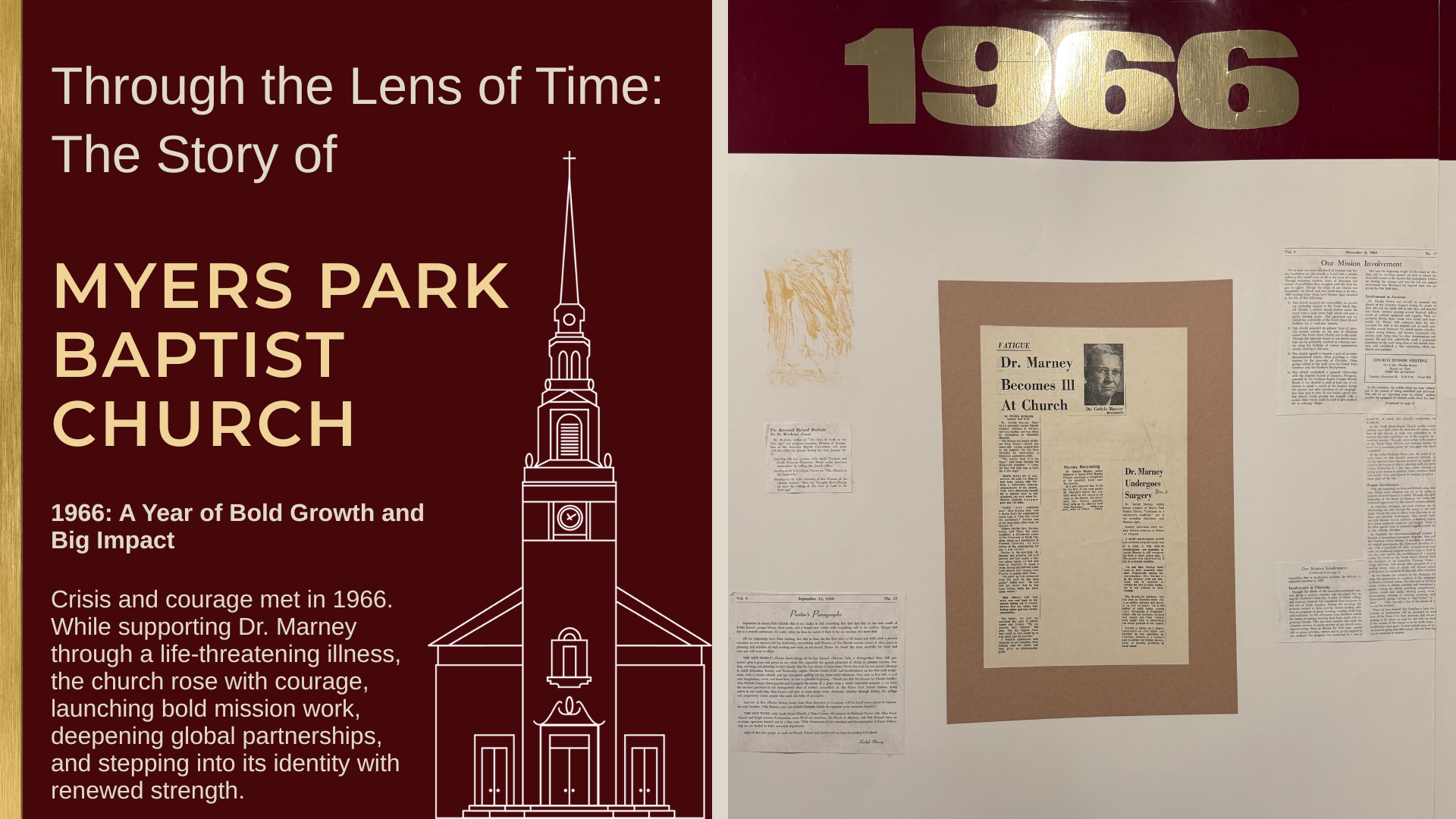 In every dimension—pastoral leadership, staff vitality, mission commitment, congregational energy, and global engagement—1966 stands as a defining year for Myers Park Baptist Church. The community’s resilience became visible through its care for Dr. Marney and its pride in his national service, while a fully engaged staff expanded the church’s capacity for worship, education, counseling, and youth ministry. At the same time, mission took compelling shape both locally—through an inner‑city summer ministry, partnerships with Tenth Street Baptist Church and work in Piedmont Courts—and globally, through an enduring relationship with Asunción and the bold promise of a mobile clinic to reach villages beyond the city. Together these efforts revealed a congregation moving with unity and purpose, rooted in compassion, courageous in service, and eager to live its faith in meaningful and transformative ways.