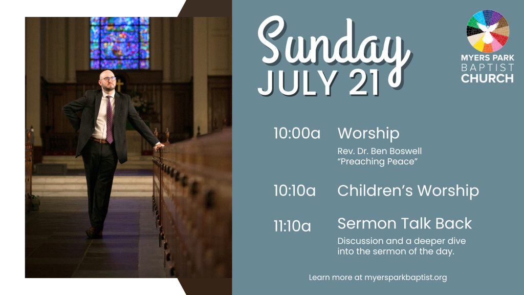 Stay following worship for Sermon Talk Back for discussion and a deeper dive into the sermon with the preacher of the day.